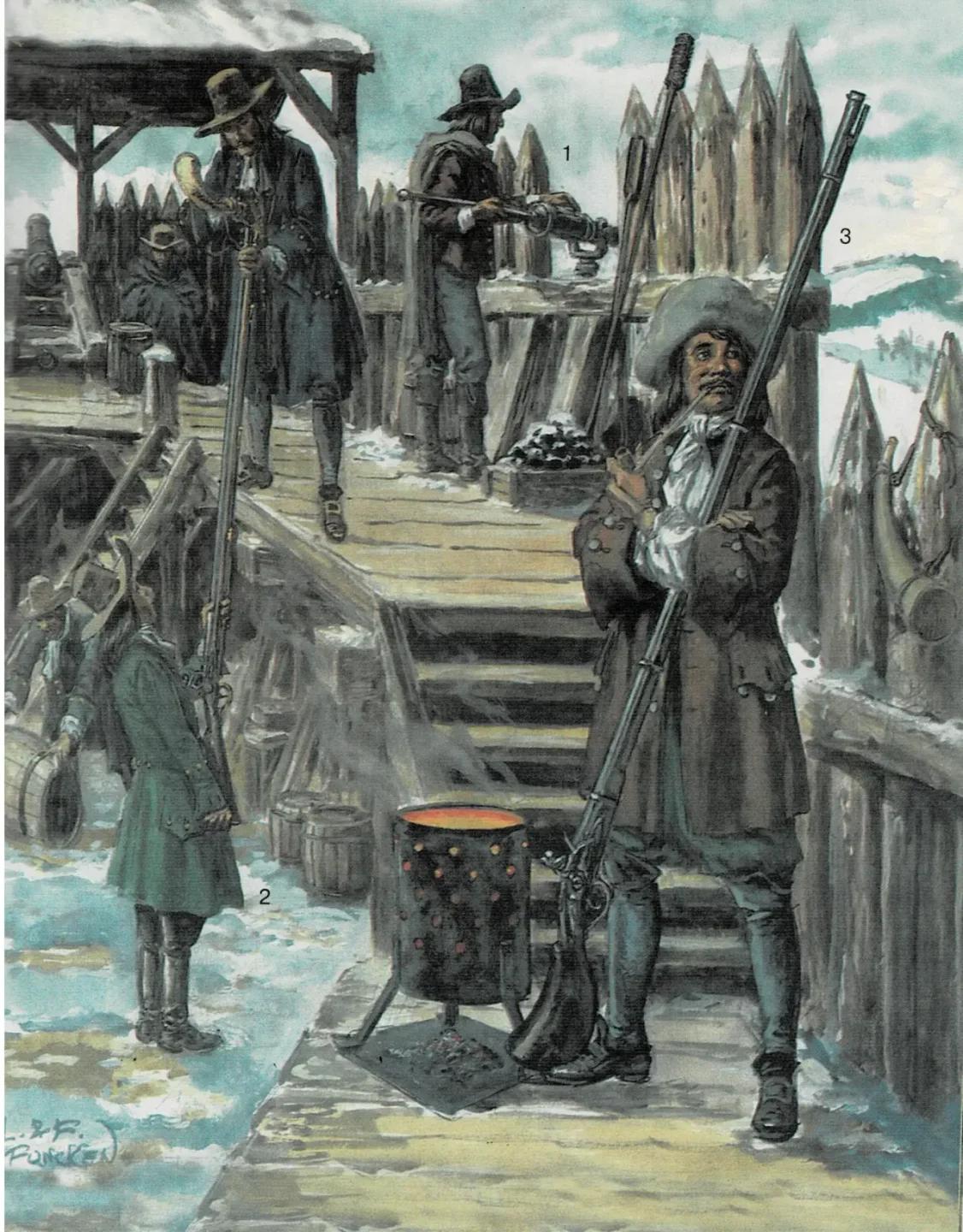 Стрелки с крепостными мушкетами на изображении из книги Лилианы и Фреда Функенов.